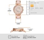 این ساعت تلفیقی از طراحی مدرن و جذابیت زنانه است. نگینهای براق اطراف قاب و نشانگرها جلوهای درخشان ایجاد میکنند و رنگ رزگلد آن با هر استایل رسمی یا روزمره هماهنگ میشود. قابلیت ضدآب 100 متری و کرنوگراف، آن را از یک اکسسوری مد صرفاً زیبا فراتر برده و به یک ابزار کاربردی نیز تبدیل کرده است.