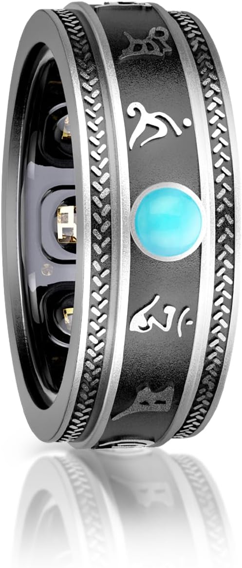 بخش بیرونی حلقه قابلیت چرخش دارد و حس لمسی آرامشبخشی ایجاد میکند. همچنین امکان تعویض اجزای تزئینی (مانند زیرکنیا یا فیروزه) وجود دارد تا حلقه را متناسب با استایل و موقعیت تغییر دهید.